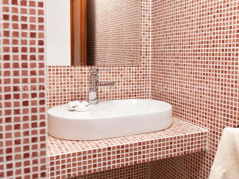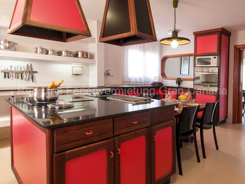 Die sanften Farben, die modernen hochwertigen Möbel und die entsprechenden Accessoires verleihen dem Wohnraum ein luxuriöses, aber gemütliches und offenes Ambiente. Hochmodernes HiFi-Equipment – wie der Plasma-Bildschirm mit internationalen Programmen, DVD-Player und High End Apple Lautsprecher für Ihren iPod sorgen für Unterhaltung auf modernstem Niveau. Nebenan befinden sich der Essbereich und die große, separate Küche in modernen Design mit Komplettausstattung: Geschirrspüler, Toaster, Kaffeemaschine, Backofen, Kühlschrank, Gefrierschrank, Mikrowelle, Waschmaschine, Trockner, etc..