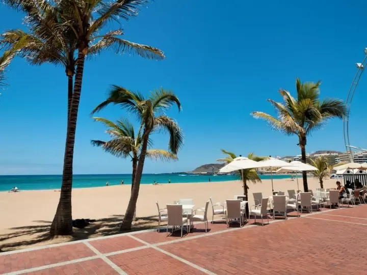 Hier erleben Sie das Beste aus zwei Welten: den urbanen Charme von Las Palmas und die unmittelbare Nähe zum goldgelben Sandstrand und Atlantik – nur 30 Meter entfernt.