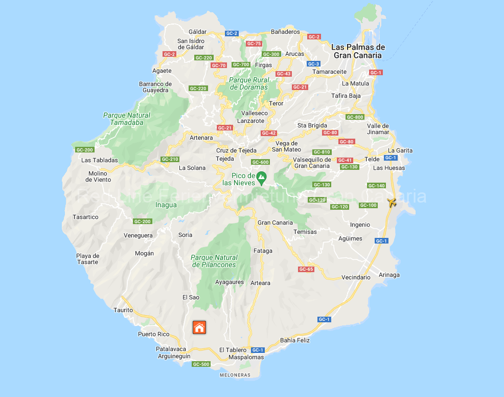 Zum beliebten Dünenstrand Maspalomas und zu den Stränden Playa Ingles, Amadores und Puerto Rico sind es ca. 10 Autominuten.